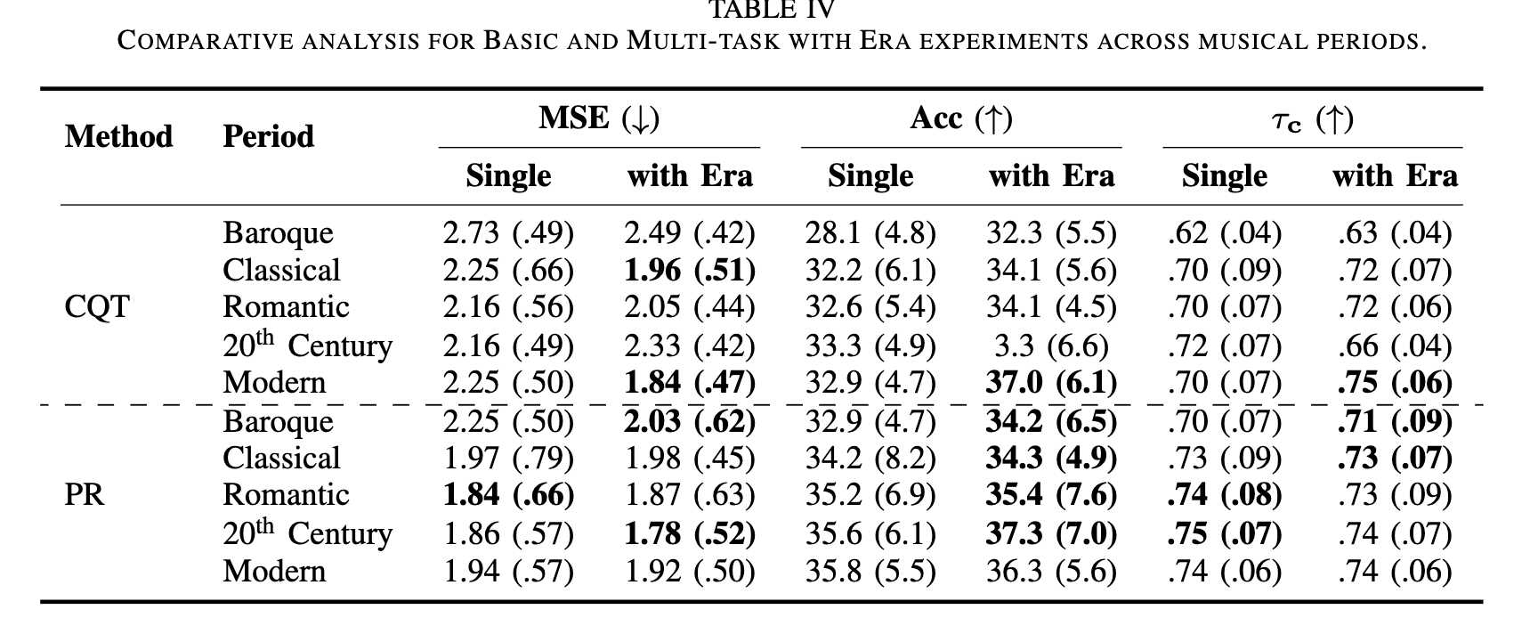 * 1) 音乐时代对难度估计的影响 (Table IV):