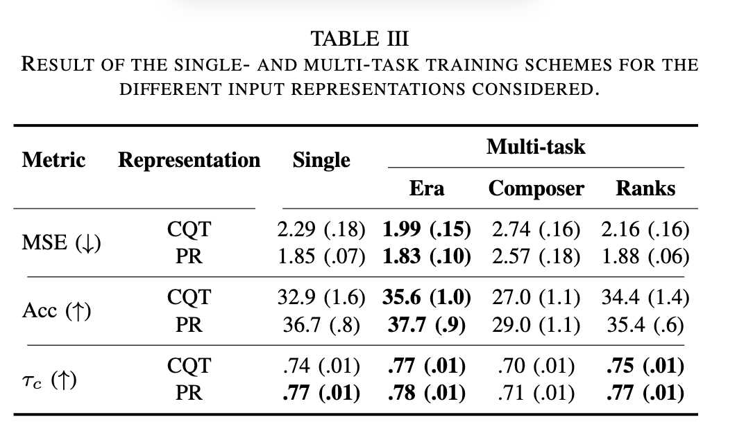 - 📈 广泛的实验证明了多任务学习(特别是音乐时代识别)能提高模型泛化能力,同时整合多重演奏结果能增强预测的稳健性,为音乐教育和MIR领域提供了宝贵见解。